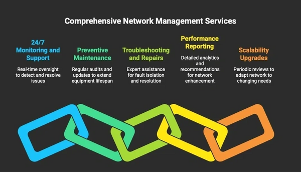 Ongoing maintenance is crucial for sustaining network health and preventing costly disruptions. Our maintenance offerings provide proactive monitoring, rapid response, and continuous improvement to keep your infrastructure running smoothly.